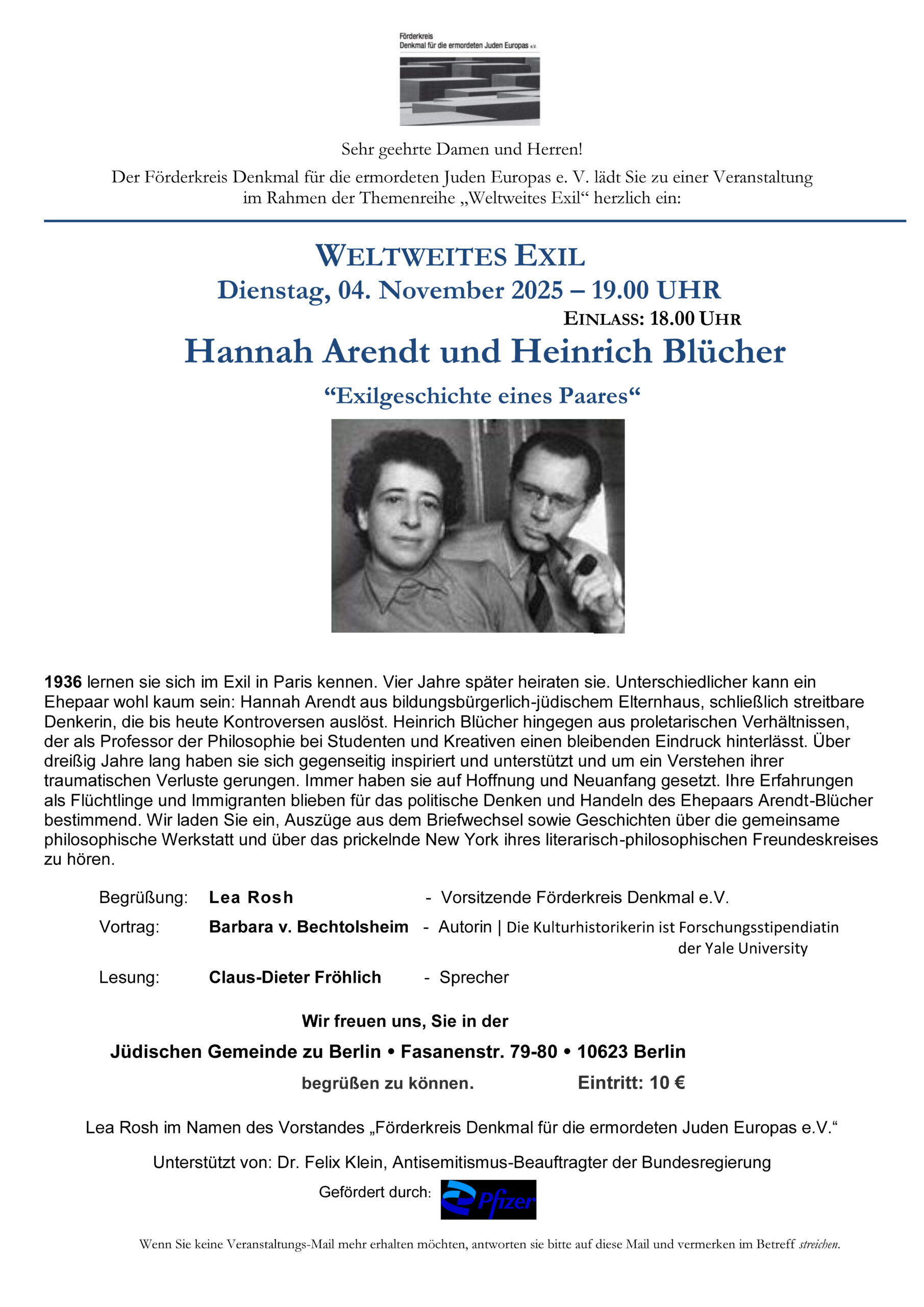 ich finde es wunderbar, dass ihr die Tradition der Künstlerkolonie fortführt. Wir würden gern bei euch /über euch vermittelt, eine Lesung machen aus unserem Buch: „Sie emigrierten nicht, fliehen mussten sie“. Es geht u.a. um Bewohner der Künstlerkolonie Anfang der 30iger Jahre wie z. B. Ernst Bloch, Alfred Kantorowicz, Artur Koestler. (s. Website)