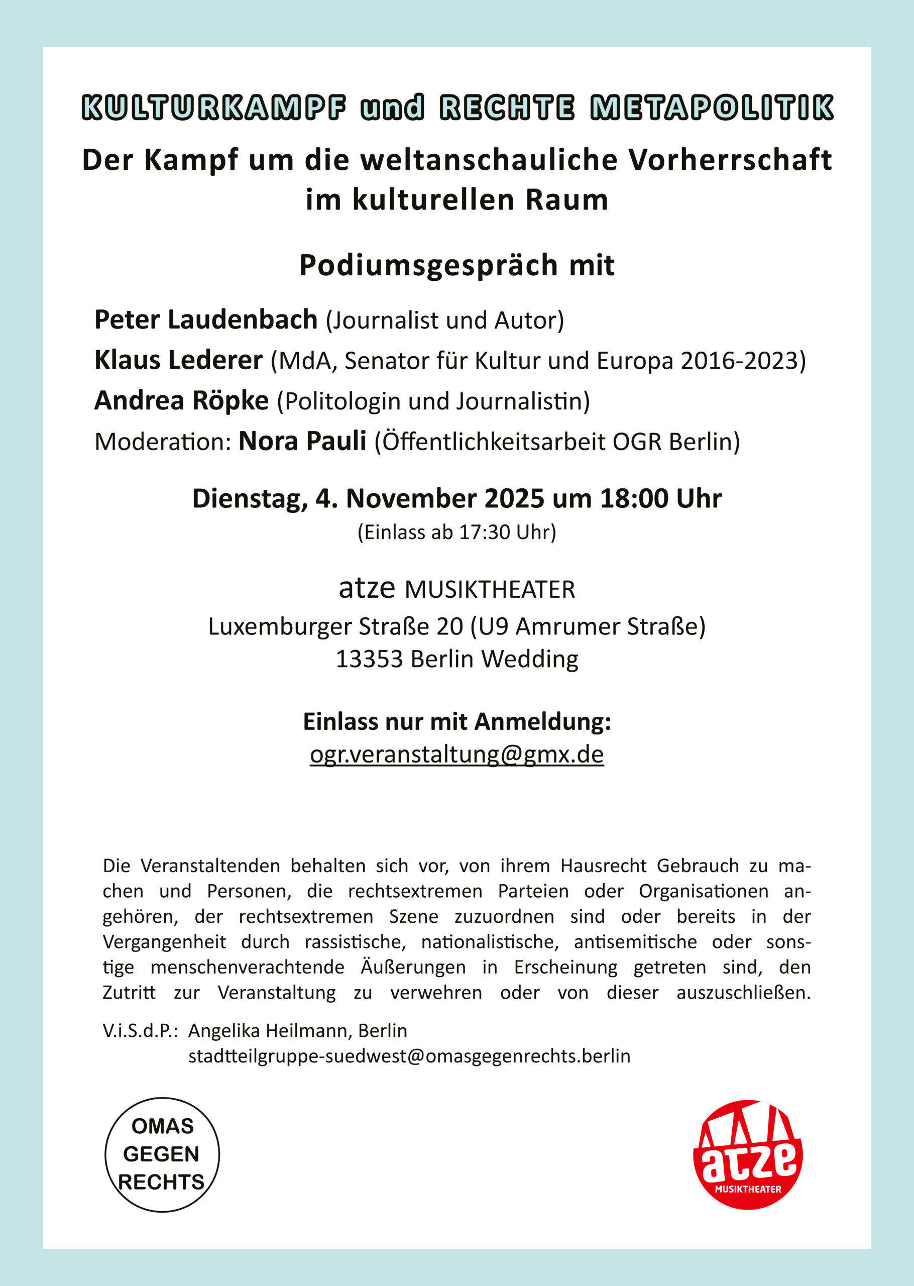 Anita Rehm, BI Breitenbachplatz, Jürgen Polinske, Ernst Busch Gesellschaft, Rita Berger, Cornelia Schönwald, Florian Wolf-Roskosch, Anna Tortajada, Ingrid Ihnen-Haas, Wolfgang Fehse, Michael Efler, Reinhard Naumann, Christa Labahn, Deutsch-Jüdisches Theater, David Yonan, Der Barde Ralph, Sören Kittel, Steffen Marciniak, Dorit Klutmann, Florian Dörstelmann, Harald Gröhler, Wolf Preuss, Manfred Maurenbrecher, Sabrin Zaher, Siegfried Modrach, Sigrun Casper, Robert Göbel, Roswitha Beck, Slov ant Gali, Herbert Laschet Toussaint, Marlies Schmidl, Petra Namyslo