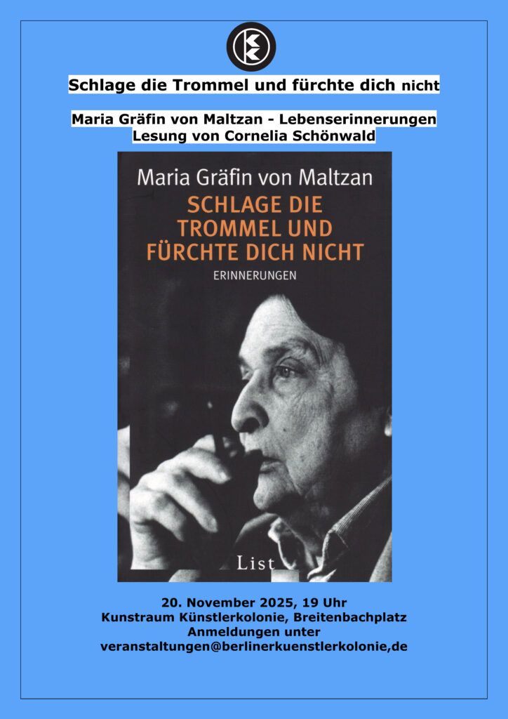 ich finde es wunderbar, dass ihr die Tradition der Künstlerkolonie fortführt. Wir würden gern bei euch /über euch vermittelt, eine Lesung machen aus unserem Buch: „Sie emigrierten nicht, fliehen mussten sie“. Es geht u.a. um Bewohner der Künstlerkolonie Anfang der 30iger Jahre wie z. B. Ernst Bloch, Alfred Kantorowicz, Artur Koestler. (s. Website)